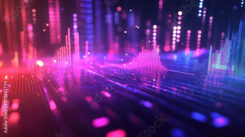 Glowing Screen Displaying Colorful Audio Waveforms, Symbolizing Advanced Sound Analysis and Technology