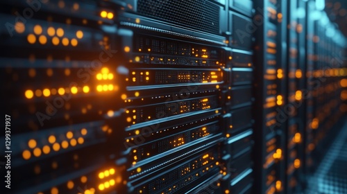 Glowing Servers: Network Data Center, Orange and Blue Lights, Abstract Technology Background