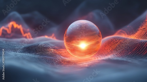 Glowing sphere emitting mesmerizing waves of energy in a captivating digital environment with a futuristic and technological aesthetic