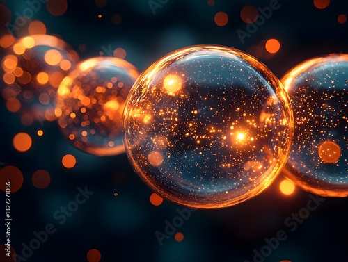 Glowing Spheres Converging to Form Unified Stakeholder Vision in Business Concept