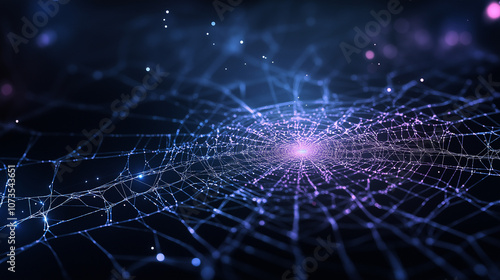 Glowing Spiderweb: Intricate cosmic web, glowing with ethereal light, digital art, abstract background