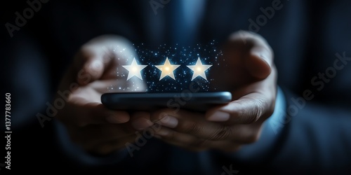 Glowing Stars Above Smartphone: A Serene Digital Rating Image