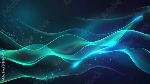 Glowing teal and blue waves of light undulate gracefully on a dark background