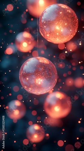 Glowing Translucent Orbs with Shimmering Reflections Against Dark Background