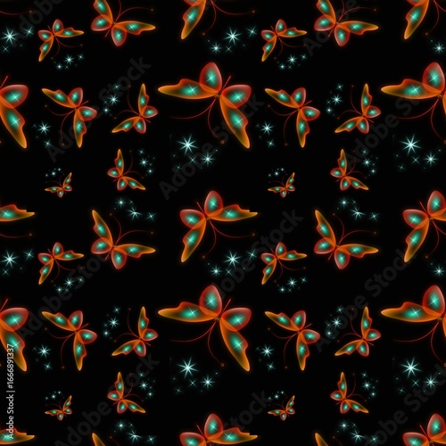 Glowing transparent background for graphic design. Template with butterflies. Multicolored abstract image as a template for cards, prints and the like.