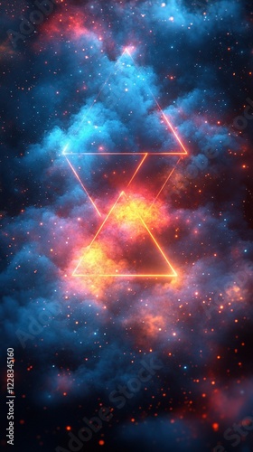 Glowing triangles in nebula, vertical format, for wallpapers or graphic projects