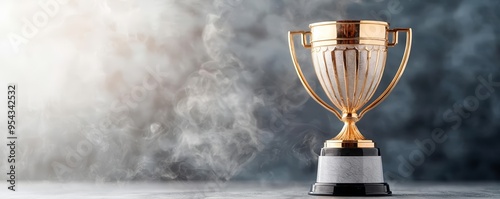 Glowing trophy on a smoky background, capturing the essence of success and excellence