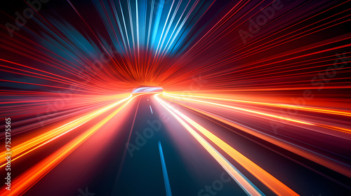 Glowing tunnel traffic, future technology speed line, using long exposure bold dynamic lines