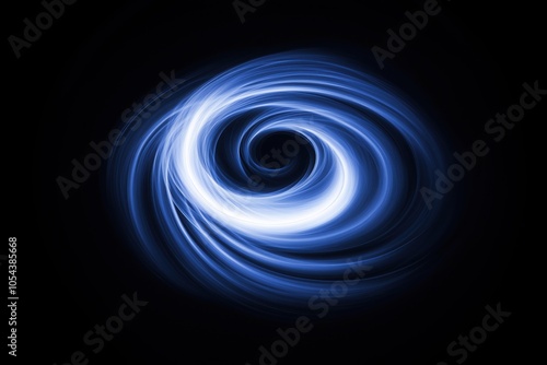 Glowing white swirl isolated on black background, abstract vortex element