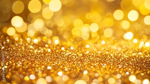 Glowing yellow bokeh circles, sparkling golden dust abstract gold luxury background decoration. Red and orange holiday bokeh.