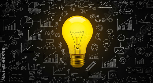 Glowing Yellow Lightbulb Illuminates Business Strategy Diagram on Dark Backdrop