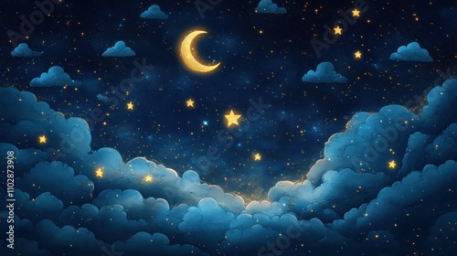 Glow-in-the-dark text with starry sky, dreamy surrealism,