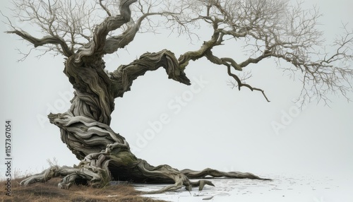 Gnarled Tree in Foggy Background with Spooky Atmosphere and Tones