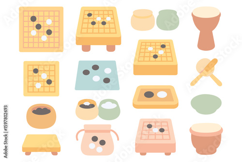 Go game elements vector illustration: strategy board game design for posters and apps in flat style