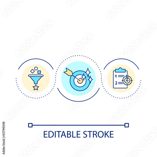 Goal setting loop concept icon. Business planning. Building strategy. Filtering information abstract idea thin line illustration. Isolated outline drawing. Editable stroke. Arial font used