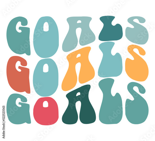 Goals, hand drawn lettering motivational, inspirational, positive quote; groovy retro wavy stacked text typography vector design isolated on white background. Phrase for t shirt, card