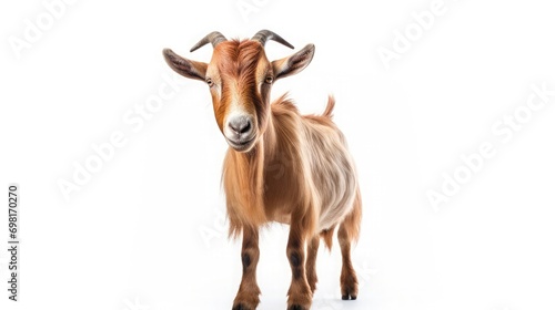 Goat isolated white background, ultra realistic photography, photorealistic, 32K, UHD, stock photo, insanely detailed