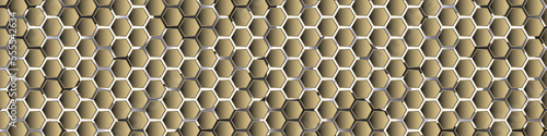 Gold 3d wide hexagonal abstract technology banner. Vector illustration