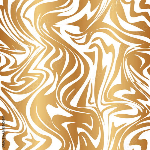 Gold abstract seamless pattern. Golden background. Marble effect. Border fluid stains. Tender lattice. Repeating delicate splash texture. Elegant liquid design fabric, wallpaper, interior, prints