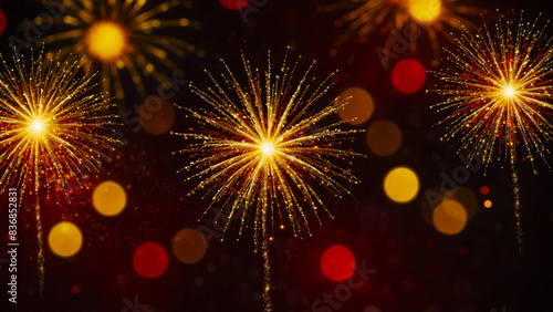 Gold And Red Abstract background, New Year's Eve Sparkles And Glitter, Fireworks