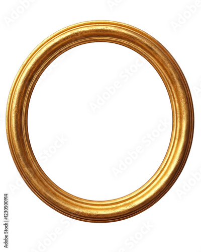 Gold circular frame designed for art displays and decoration, isolated on a transparent background. PNG