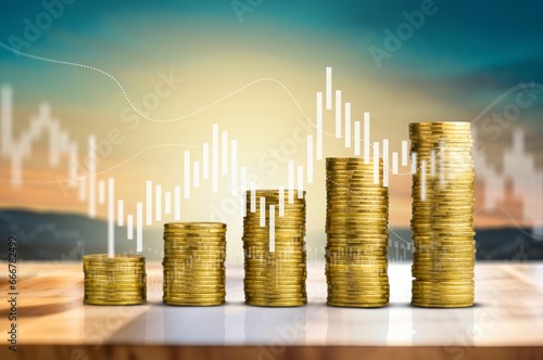 gold coin and Business stock investment concept, AI generated image