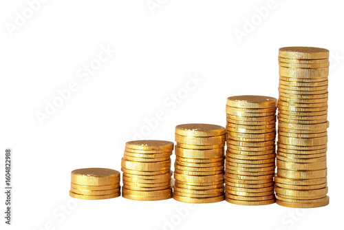 Gold coins stacked in ascending order, forming a graph of increasing value