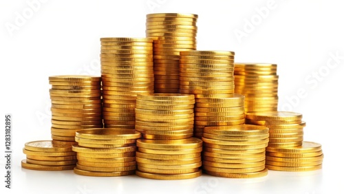 Gold Coins Stacked on White Background