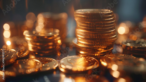 Gold coins stacks is representing riches and wealth management. Coin stack growing and find out the way to get a return on investment. Finance and money exchange investment as concept