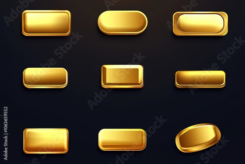 Gold color gradient rectangle button set vector illustration on dark background, flat design, vector graphics, flat style, 2D design, simple lines and shapes, flat color blocks