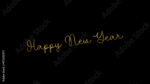Gold color happy new year text message with brush effect gold color on black background.