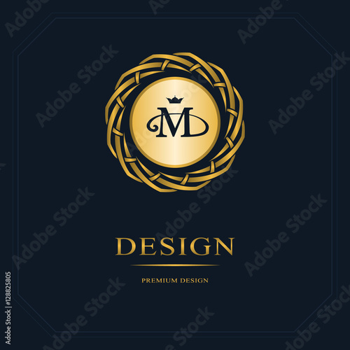 Gold Emblem of the weaving circle. Monogram design elements, graceful template. Simple logo design Letter M for Royalty, business card, Boutique, Hotel, Heraldic, Web design. Vector illustration