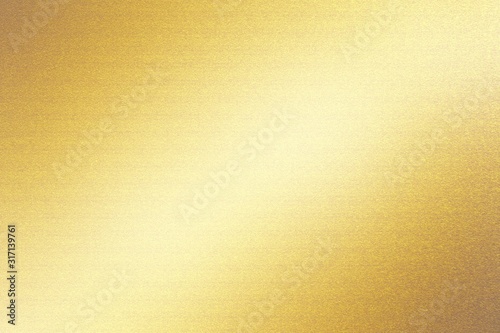 Gold foil metal sheet with glowing shiny light, abstract texture background