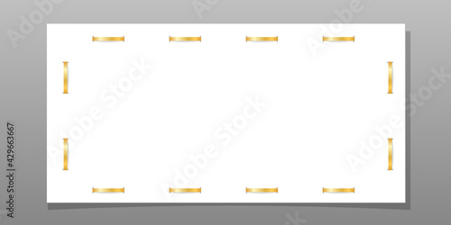 Gold frame 3D. Square border, isolated white background. Golden stitch, tack. Design Christmas card, New Year celebration, wedding, birthday. Empty copy space. Vintage retro style Vector illustration