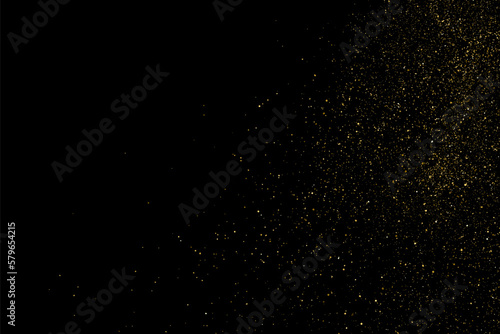Gold Glitter Texture Isolated on Black Background. Golden stardust. Amber Particles Color. Sparkles Rain. Vector Illustration, Eps 10.