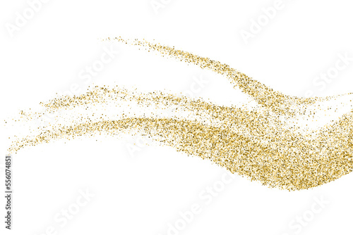 Gold Glitter Texture Isolated On White. Goldish Color Sequins. Golden Explosion Of Confetti. Design Element. Celebratory Background. Vector Illustration, Eps 10.