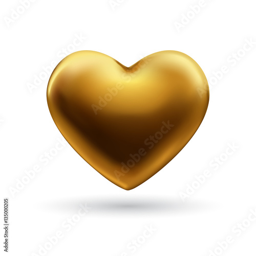 Gold heart isolated on white background. Happy Valentine's day greeting card template. Vector illustration.