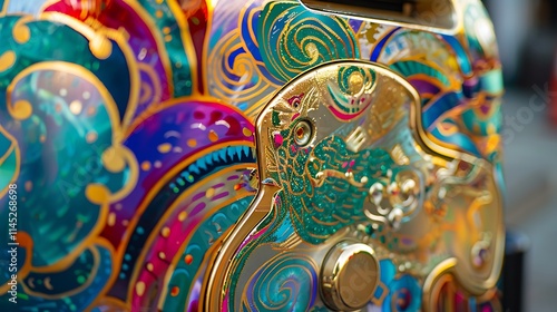 Gold Leaf Art on a Parking Meter, Enhanced with a Colorful Abstract Design, Bringing Artistic Flair and Vibrant Energy to Urban Street Spaces