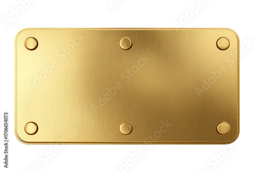 Gold metal plate, rectangular, smooth surface, with four mounting holes