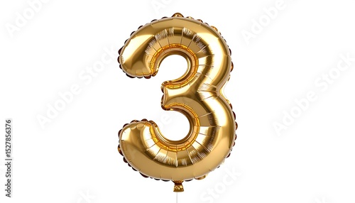 Gold number three balloon for birthday party decorations and anniversary celebration isolated on white generative ai