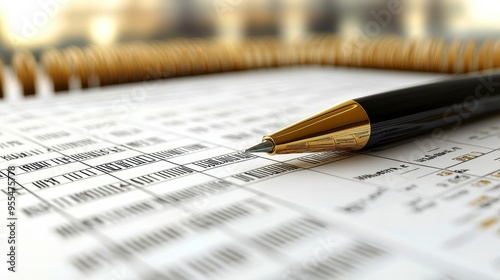 Gold Pen on a Planner, Close-Up, Focus on the Nib, Pen, Planner, Schedule