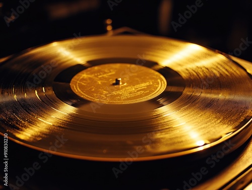 Gold Record on Turntable in Dark Room
