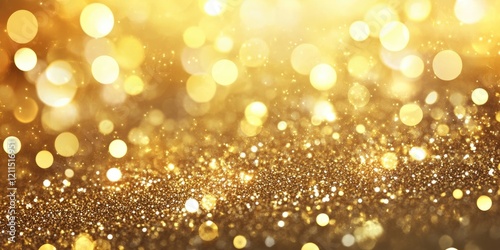 Gold shimmering backdrop with an array of golden bokeh lights, featuring sparkling textures ideal for festive greetings and celebrations.