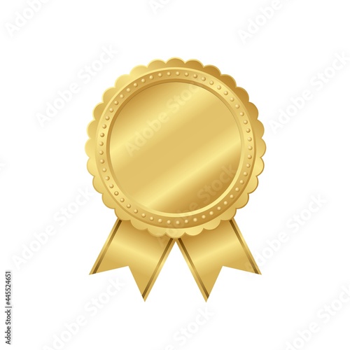 Gold stamp with ribbon isolated on white background. Luxury seal. Elements vector design