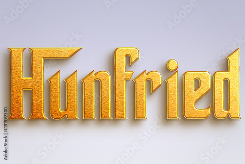 Gold text effect of Deutsche name Hunfried on light-blue background.