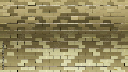 Gold Tiles arranged to create a Glossy wall. Luxurious, Rectangle Background formed from 3D blocks. 3D Render