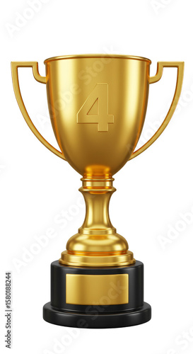 Gold Trophy Cup Number Four Render Success Award Isolated Background