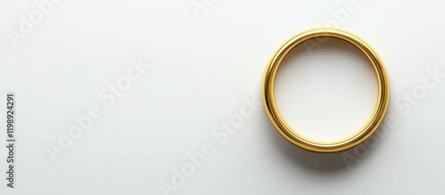 Gold wedding ring on a clean white background with ample copy space for text placement.