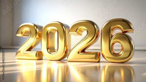 Golden 2026 New Year Celebration Numbers on White Reflective Surface