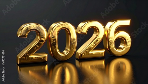 Golden 2026 New Year Celebration on Dark Background, Modern Golden Numbers for New Year's Greeting